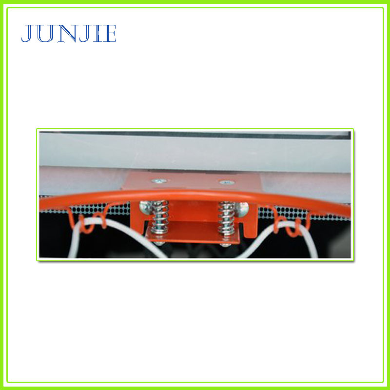 A estrutura da bola de basquete é normalmente feita de materiais duráveis, como aço ou alumínio, para suportar o impacto da bola de basquete atingindo a tabela e o aro. Ele foi projetado para ser robusto e estável, garantindo que possa suportar a natureza física e acelerada do jogo.